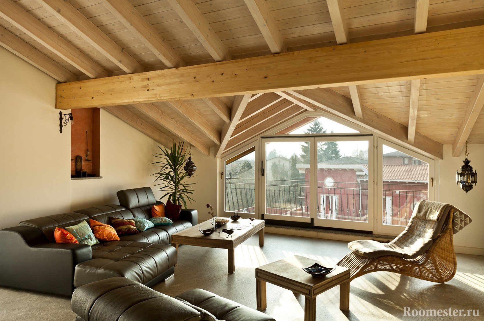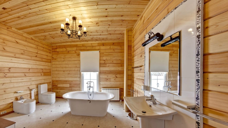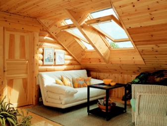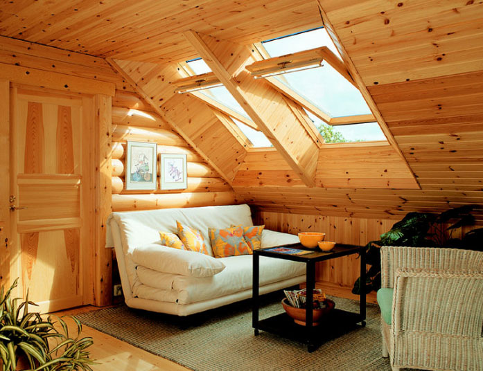 - Es ist notwendig, die natürliche Beleuchtung im Haus so weit wie möglich zu organisieren, da das Holz künstliche Lampen nicht mag.