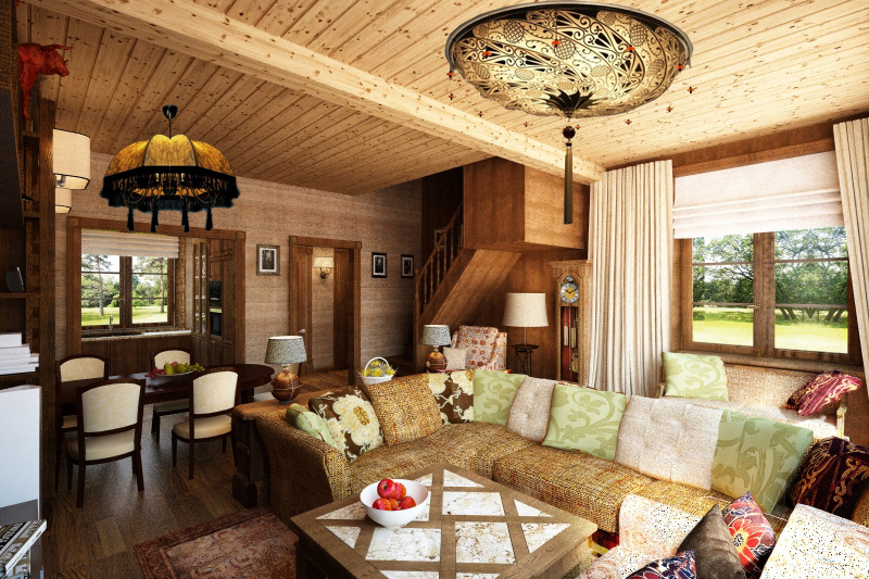 Das Innere eines Holzhauses: Optionen für die Innenarchitektur