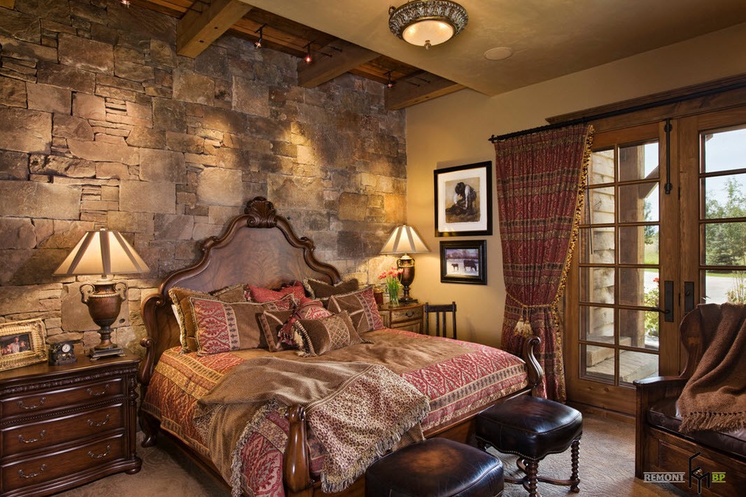- Mediterrane Motive. Die Räumlichkeiten zeichnen sich durch Holzbalkendecken, Holzwände und Keramikfliesen auf dem Boden aus. Die Kombination von Mauerwerk sowie das Vorhandensein von natürlichen und hellen Farbtönen im Inneren tragen zu einer fröhlichen Stimmung in den Räumen bei. Möbel für Design ist besser aus Naturholz, Korbstühlen und Steinplatten wählen Sie schön aus. Der letzte Schliff in diesem Dekor sind hochwertige Vorhänge und Vorhänge. Die Wände können mit Bambus- oder Seidentapeten dekoriert werden.
