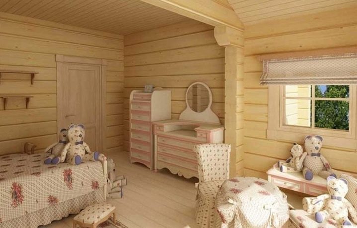 Holz ist ein natürliches Material, das nicht nur Wärme speichert, sondern auch makellos aussieht. Viele Besitzer solcher Wohnungen versuchen, die natürliche Struktur der Bars zu bewahren und führen keine Inneneinrichtung durch, aber ein solches Interieur mag stickig und beengt erscheinen. Deshalb Wenn Sie eine oder mehrere Wände im Raum entwerfen, erhalten Sie das ursprüngliche Design. In der Regel verwenden sie zu diesem Zweck Trockenbau, der dann mit Tapeten oder Farbe bedeckt wird, und Wände mit dekorativem Putz sehen auch nett aus.