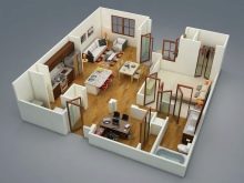 - Einstöckiges Haus. Gekennzeichnet durch die Tatsache, dass der gesamte Bereich des Wohnens maximal betroffen ist. In der Regel ist es ein kombiniertes Badezimmer. Das Wohnzimmer ist meistens sowohl ein Ort zum Empfangen und Entspannen, als auch eine Küche und Essbereich. Es kommt vor, dass das Wohnzimmer auch einen Schlafplatz beinhaltet, aber es ist besser, es zu einem separaten Raum zu machen.