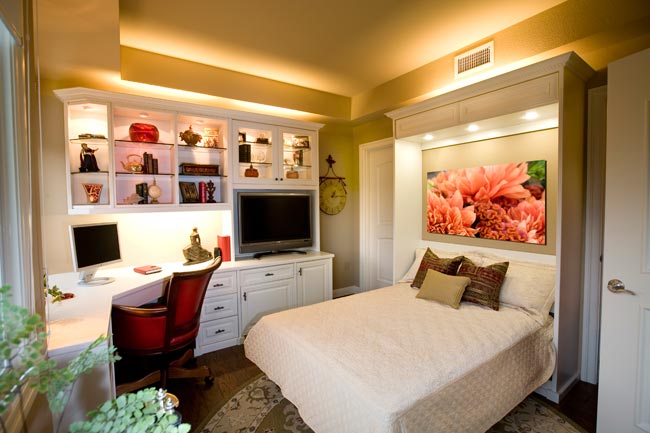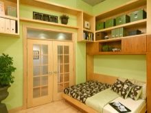 Es ist klar, dass das Schlafzimmer im Mini-Haus klein ist. Möbel, die sich umbauen lassen, sind daher eine gute Option, die sich Besitzer von Mini-Häusern genauer ansehen sollten, da sie platzsparend sind. Es lohnt sich, auf die Betttransformatoren zu achten, die sich beispielsweise mit einer Handbewegung in einen Tisch verwandeln.