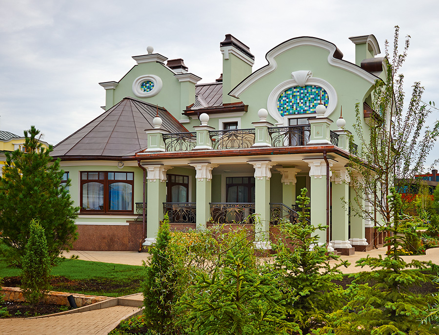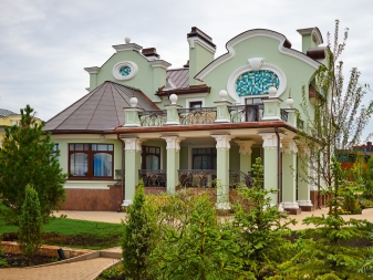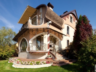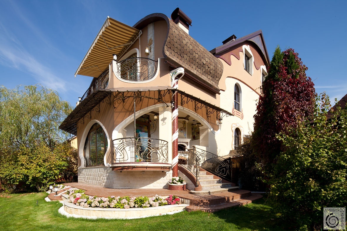Die Fassade des Hauses, im Art Nouveau-Stil gehalten, trägt in sich eine Art von Fabelhaftigkeit. Fenster, Türen, Geländer im Rahmen dieses Stils haben glatte Konturen. Zum Beispiel gibt es in solchen Häusern oft ungewöhnliche ovale oder runde Fenster, wie in Schlössern. Normalerweise sind alle Details der Struktur in dieser Version symmetrisch gemacht.
