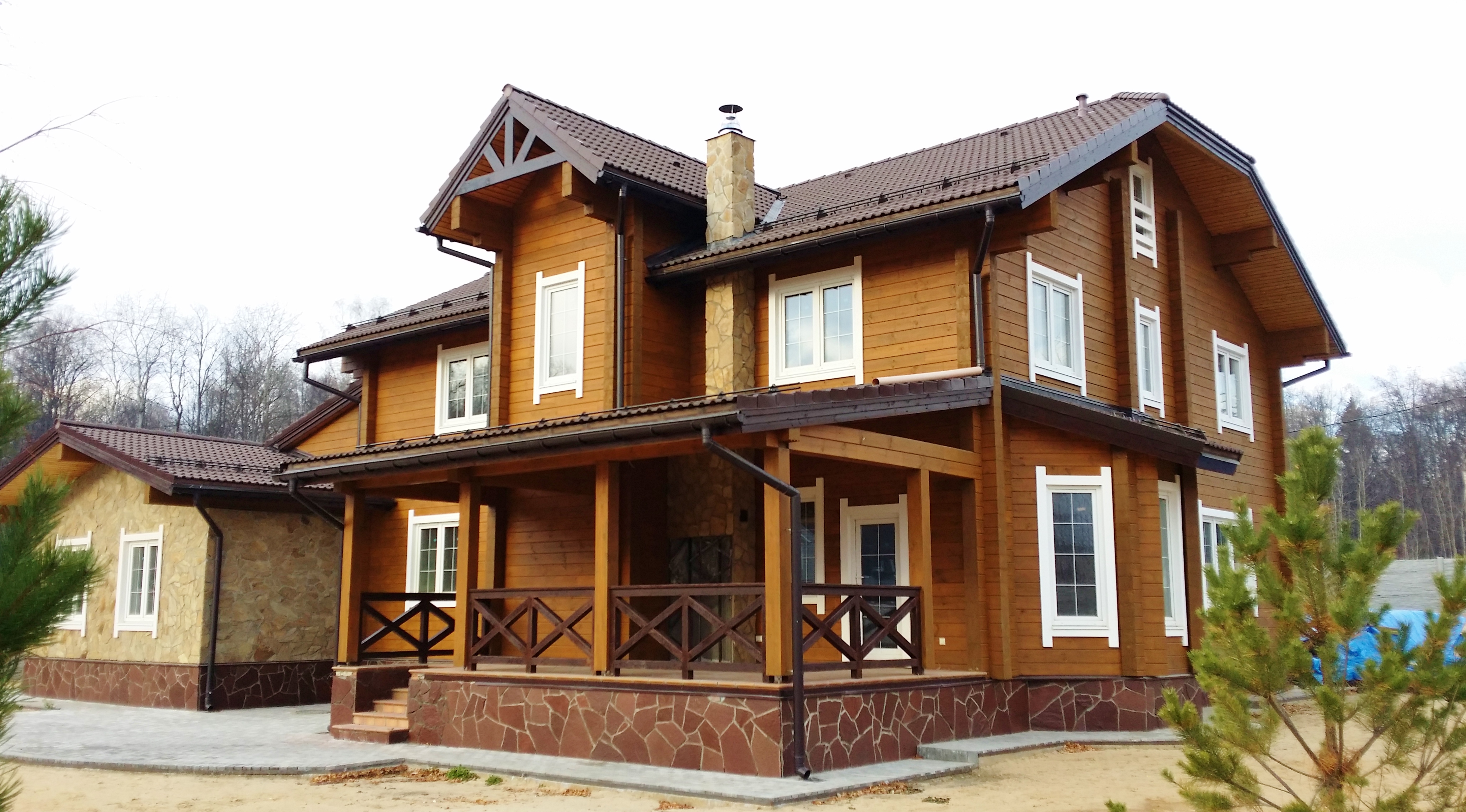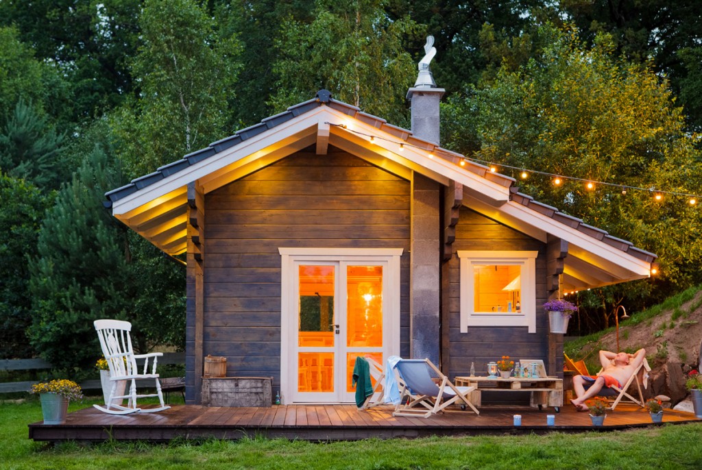 Sehr oft wird für den Bau von Mini-Häusern Holz verwendet. Die Vorteile hier sind natürlich eine Menge. Holz ist ein natürliches Material, was bedeutet, dass Sie sich keine Gedanken über die Verdunstung von Schadstoffen machen müssen. Darüber hinaus emittieren einige Baumarten Teer, dessen Geruch sich positiv auf die menschliche Gesundheit auswirkt. Holzverkleidung sieht sehr teuer und edel aus. Die Technologie des finnischen Häuserbaus beinhaltet die Arbeit mit diesem Material. Unter den Mängeln kann möglicherweise verrottendes Material identifiziert werden. Dies kann auf eine schlechte Verarbeitung zurückzuführen sein. Außerdem sind die Kosten für diese Option viel höher.