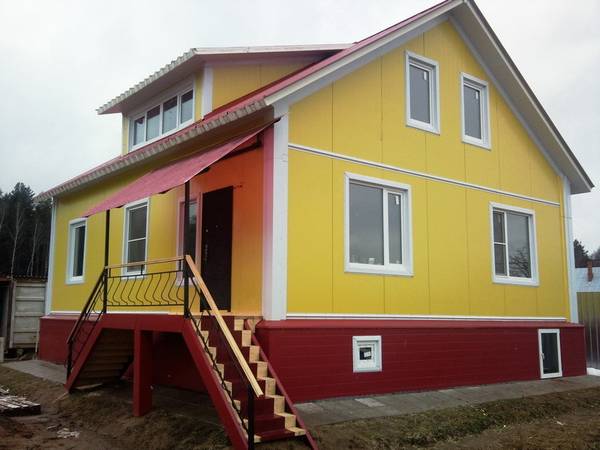 Die am meisten finanzierbare Option ist die Verwendung bei der Herstellung von Sandwichelementen. Dies ist ein sehr leichtes Material, das keine wesentlichen Investitionen in die Stiftung erfordert. Der Bau mit seiner Teilnahme ist ziemlich schnell. Natürlich können sie in Bezug auf die Festigkeit nicht mit den Vorgängerversionen mithalten, andererseits kann man sich über ihre Wärmedämmeigenschaften nicht beklagen.