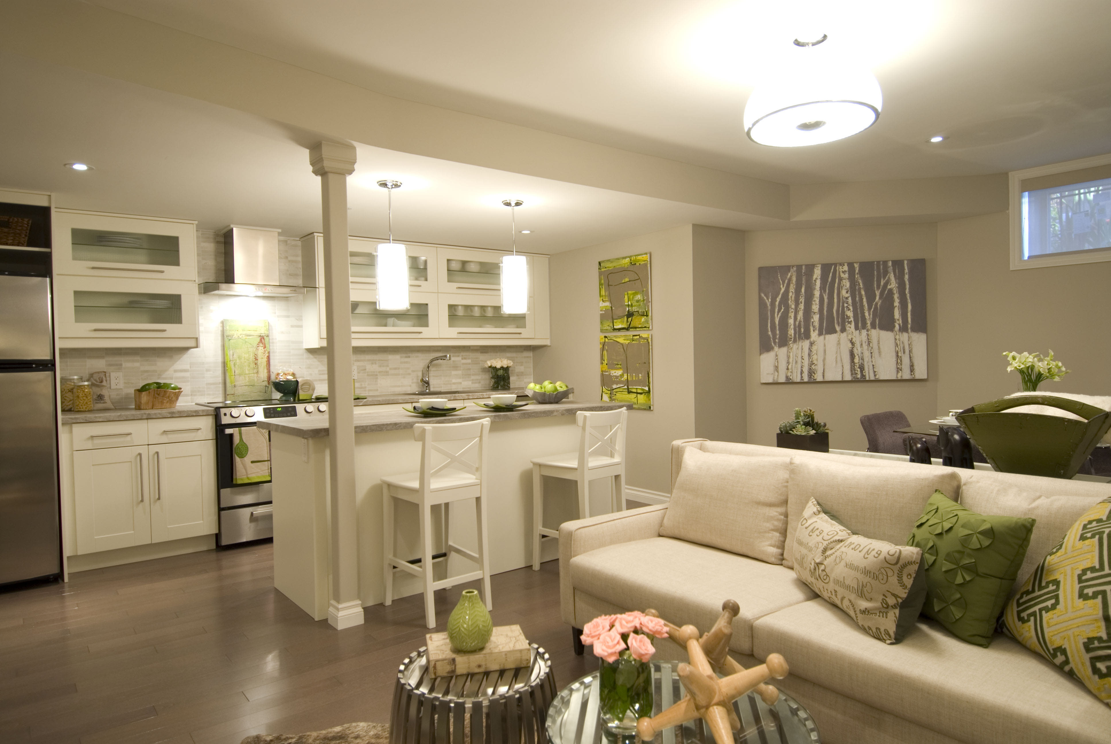 Was auch immer das schöne Aussehen des Hauses ist, aber innen ist es notwendig, auf Bequemlichkeit zu achten. Wie wir bereits verstanden haben, ist hier nicht genug Platz und es muss weise genutzt werden. Wenn das Layout eine kombinierte Küche und ein Wohnzimmer vorsieht, kann daher ein Bartresen verwendet werden, um diese zwei Zonen zu trennen. Zusätzlich zur Zoneneinteilung erhalten Sie zusätzlichen Platz zum Naschen oder Sie können es als Essbereich nutzen. So sparen Sie Platz und finden gleichzeitig ein modisches, stylisches Design.