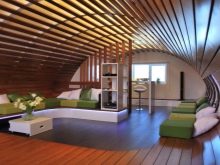 - Attic Raum ist nicht in der Wahl der Innenarchitektur begrenzt. Je nach Budget und Geschmacksvorlieben können Sie es in jedem Stil ausstatten.