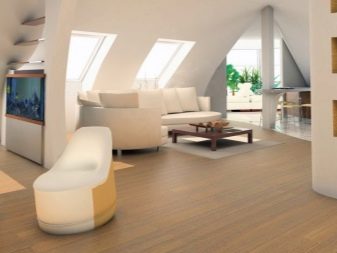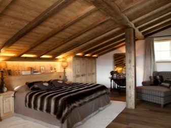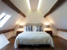Die Komplexität des Designs ist das Vorhandensein von Balken, sowie die geringe Höhe der Wände (manchmal etwa 0,8 - 0,9 m). Dies führt häufig zur Installation von Möbeln an genau definierten Orten.