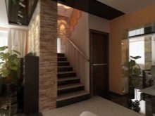 - Eine wirtschaftliche Lösung beim Entwerfen von Treppen. Das Projekt sieht vor, den Raum im ersten Stock zu sparen und den Winkel unter der Treppe zum Dachgeschoss zu nehmen.