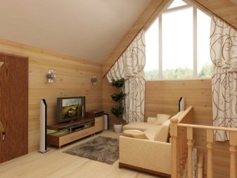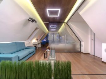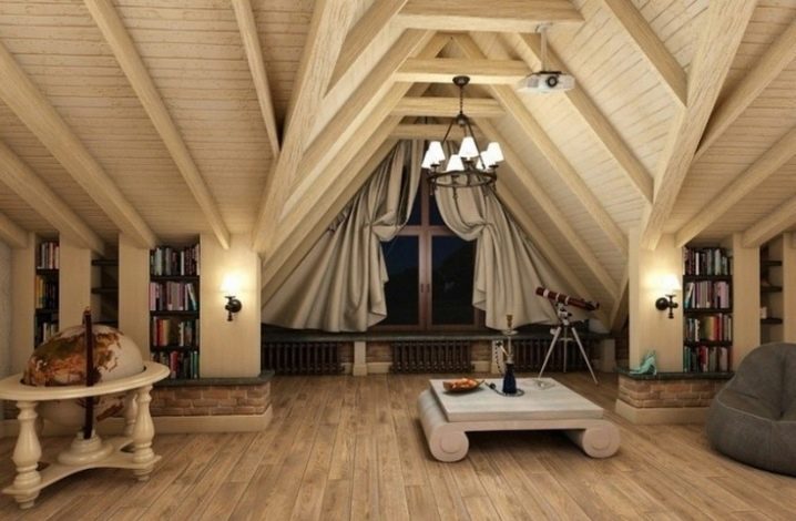 - Das Vorhandensein eines Dachbodens wird es ermöglichen, es als separate Ecke für jene Haushalte zu nutzen, die Privatsphäre benötigen (zum Beispiel für Arbeit oder Reflexion).