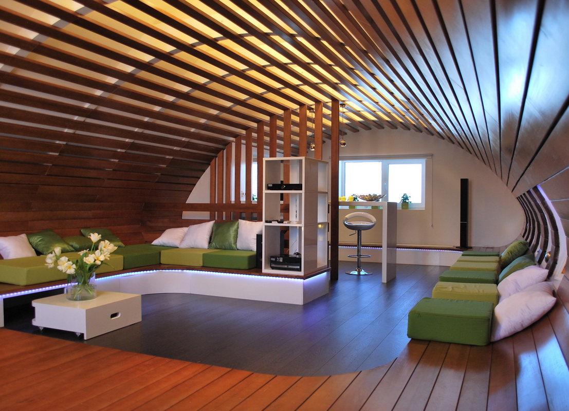 - Je nach Art des Layouts und des verfügbaren Platzes kann der Dachboden als Badezimmer, Schlafzimmer, Arbeitszimmer, Bibliothek, Kinderzimmer, Wohnzimmer und sogar als Esszimmer mit Küche genutzt werden.