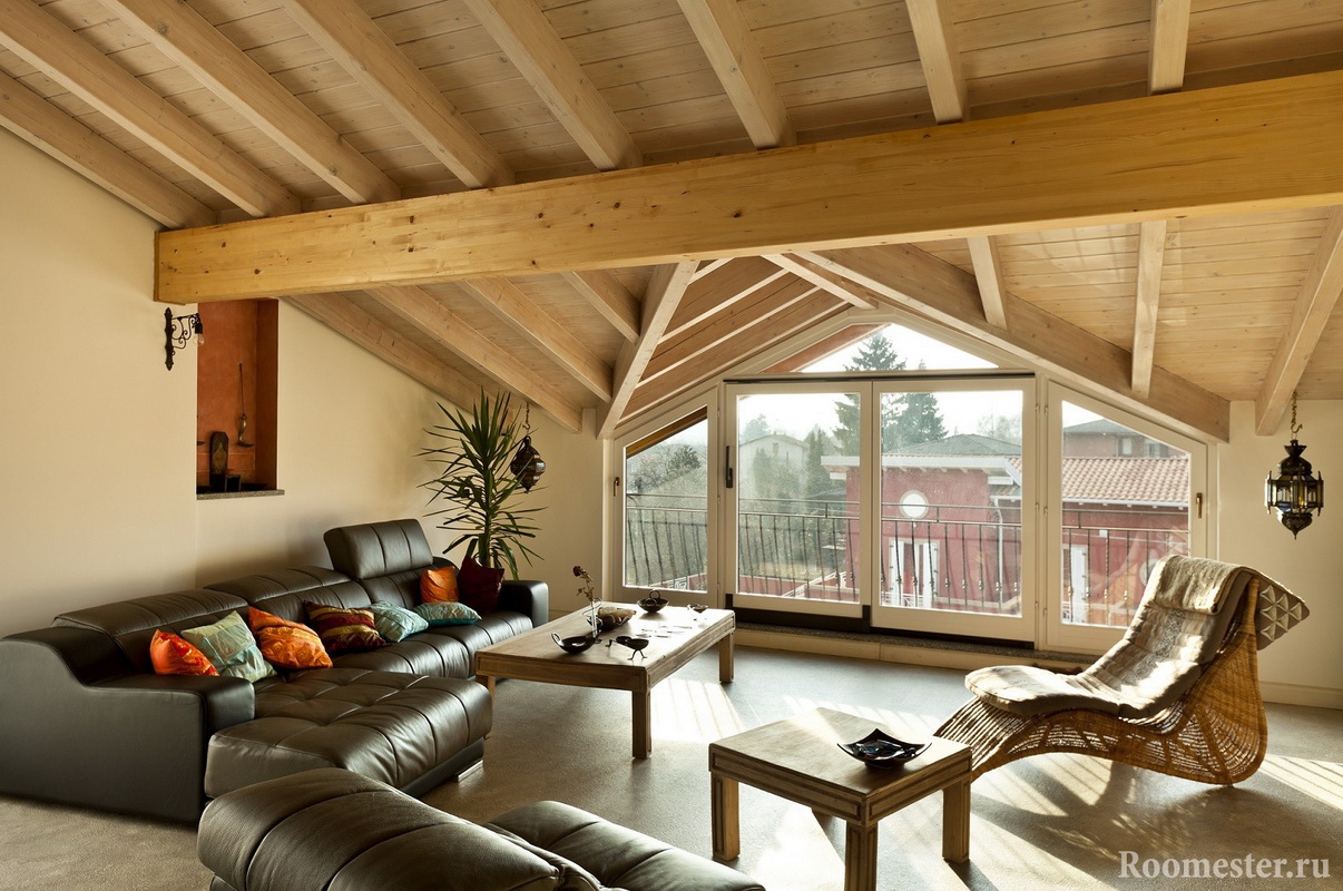 - Dachboden mit Erker ist eine gewinnende Option. Das Vorhandensein von Fenstern wird den Lichtmangel auf dem Dachboden ausgleichen.