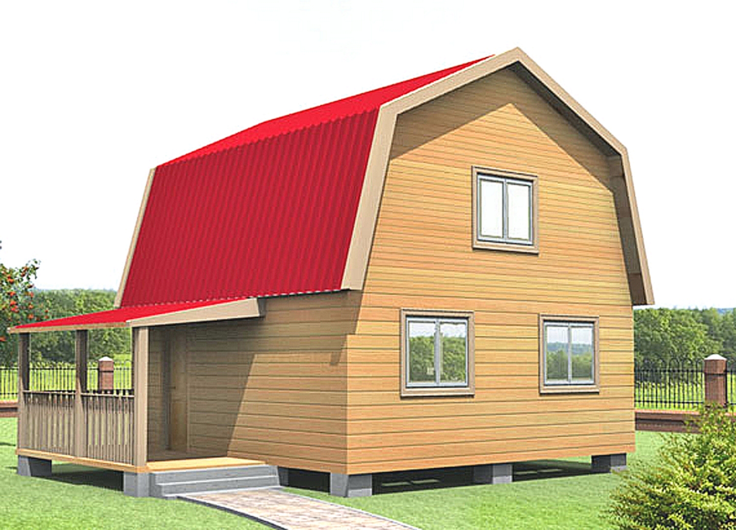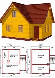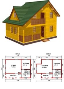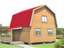 Wenn wir über den Bau eines Gartenhauses sprechen, kann das Projekt kein Badezimmer beinhalten. Nach der Planung wird das Gebäude nur ein Schlafzimmer, ein großes Wohnzimmer und eine ziemlich gemütliche Küche haben, die in das Esszimmer verlegt wird. Wenn es möglich ist, ein Mansardenzimmer zu bauen, wird es zu einem Schlafzimmer. Eine Vergrößerung des Raumes, wie oben erwähnt, ist möglich. auf Kosten der Veranda, die sowohl offen als auch geschlossen sein kann, Alles hängt von Ihren persönlichen Wünschen ab.