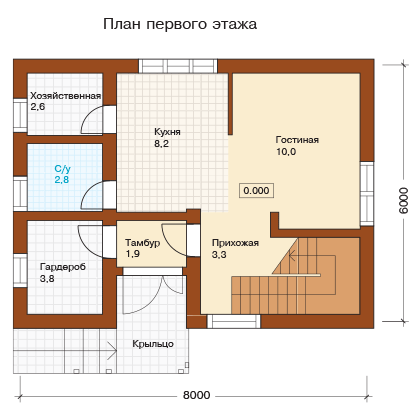Das Projekt des Hauses ist 8x6 m oder 48 qm. mit einem tollen Layout