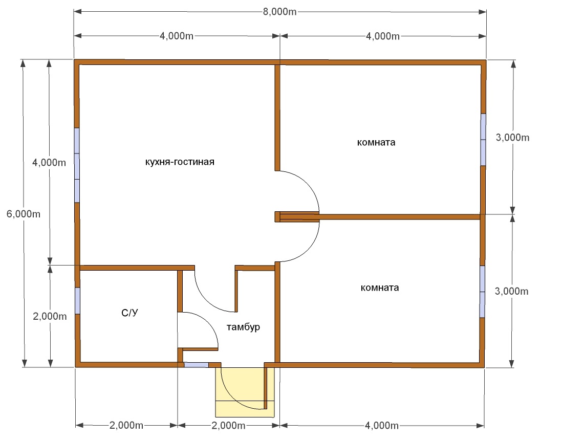 Es gibt andere Methoden, die häufig während des Aufbaus benutzt werden und ausgezeichnete Eigenschaften haben. Also, wenn Sie sich entscheiden, ein Haus 6x8 m zu bauen, wählen Sie zuerst das Projekt und entscheiden Sie über den Standort der Räume.