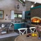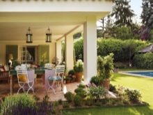 - Stilvoll eingerichtete Veranda verleiht Ihrem Ferienhaus eine originelle Würze.Hier kann man die Fantasie nicht zurückhalten: Kontrastfarben, stilvolle Beleuchtung, eine originelle Klingel oder ein Knopf zum Anklopfen, viel Grün in ungewöhnlichen Töpfen - all dies lässt Passanten nicht nur auf Ihr Haus aufmerksam werden.