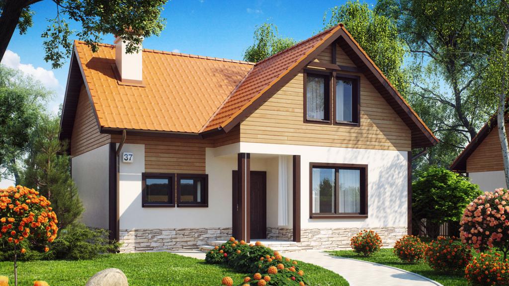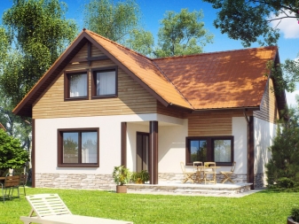 - Die Farbpalette hat einen atemberaubenden Effekt. Viele Designer bieten an, Ihr Haus interessant zu machen, mit einer Kombination von zwei Schattierungen, die sich gegenseitig korrekt schattieren. Helle Farben machen Ihr einstöckiges Cottage optisch größer und geräumiger. Wenn Sie den entgegengesetzten Effekt benötigen, verwenden Sie, wenn Sie im oberen Teil des Hauses dunkle Farben entwerfen, und lassen Sie das untere Licht.