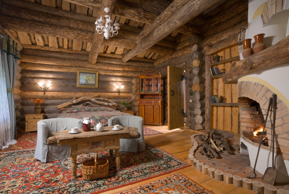 Wenn das Gelände neben den notwendigen Funktionsräumen wie Wohnzimmer, Schlafzimmer, Küche und Kinderzimmer einen Spielraum für Kinder, ein Billardzimmer, eine Sauna und ein Fitnessstudio bietet Viele bevorzugen es, ihre Landhütte mit einem Kamin zu schmücken, vor dem Sie nach intensiven Tagen entspannen können.
