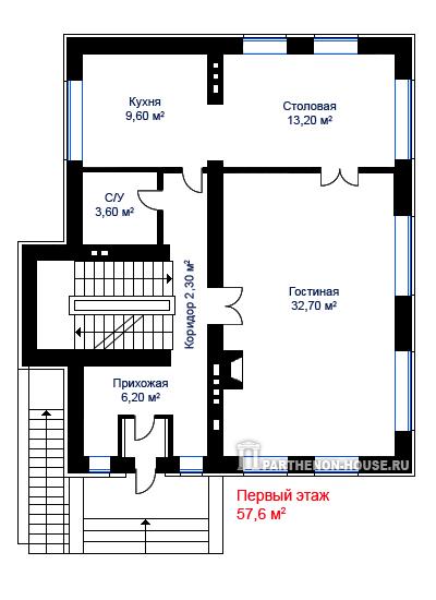Bei entsprechender Planung in einem solchen Haus können Sie alle notwendigen Funktionsräume, einschließlich der Gästezimmer, einrichten.