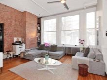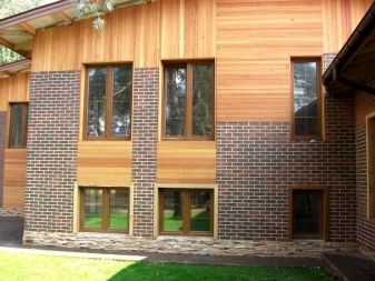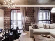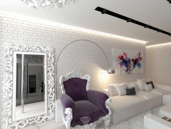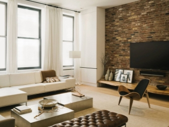Oft basieren diese Häuser auf Holz und anderen ähnlichen Materialien und sind nur mit Mauerwerk ausgekleidet. Einige Besitzer wenden sich an interessante Designtricks und eine der Wände in jedem Raum wird nicht getrimmt, so dass der Ziegel an einer prominenten Stelle bleibt.Mit Hilfe eines solchen Details wird es möglich sein, ein ungewöhnliches Ensemble im Stil eines Lofts oder Industrial zu schaffen.
