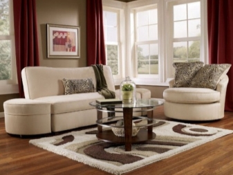 Wie für die Möbel, in modernen Wohnzimmern sehen monophone Objekte am besten aus. Wenn es sich um ein Sofa und Stühle handelt, dann sind die besten Optionen Modelle mit Lederbezug. Sie können Produkte aufnehmen und weben, aber in diesem Fall ist es notwendig, reine Häute ohne helle Drucke oder Blumenarrangements zu bevorzugen.