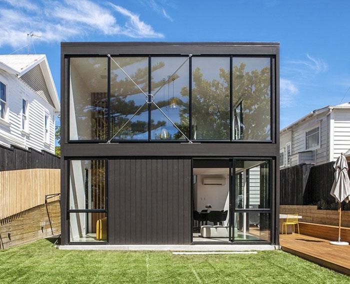 Modular Gleichzeitig gehörten die Häuser zunächst zu den "provisorischen Gebäuden", daher wurden nur die billigsten und zuverlässigsten Materialien für ihren Bau verwendet. Gegenwärtig wurden modulare Konstruktionen jedoch stark verbessert und sind in vielerlei Hinsicht den Rahmenversionen ähnlich geworden. Sie sind sehr mobil, so dass sie leicht von einem Ort zum anderen transportiert und sogar demontiert / zusammengebaut werden können, ohne die Struktur zu beschädigen.