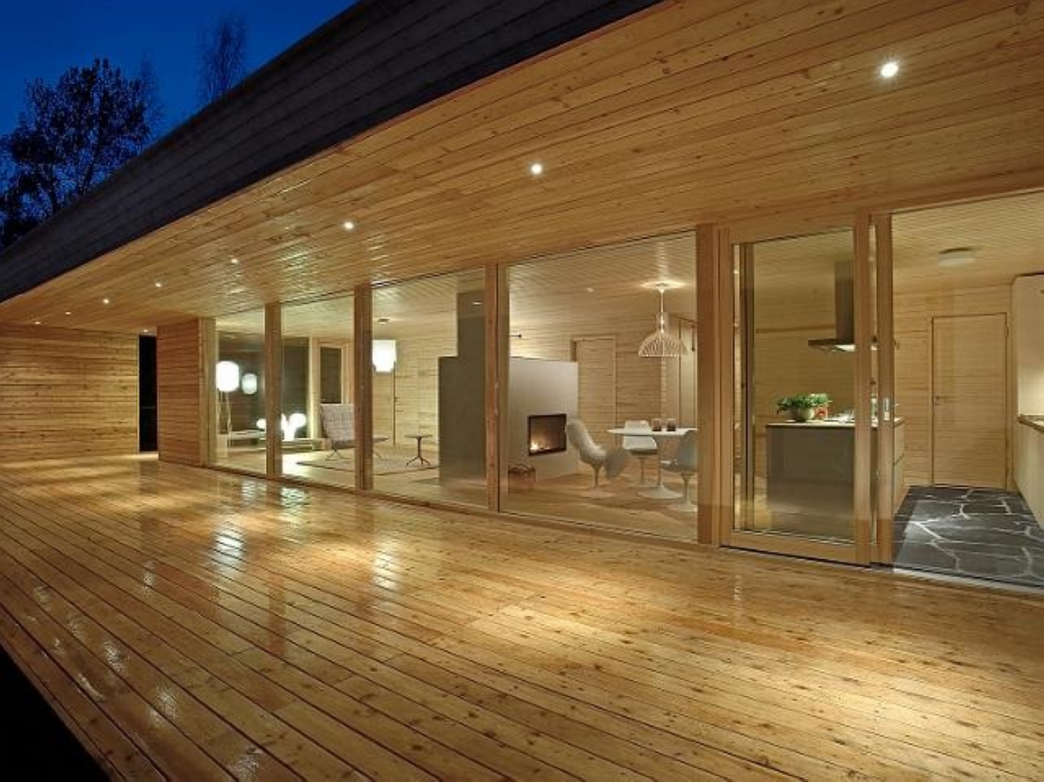 - Naturholzeinlagen auf verputzten Fassaden;