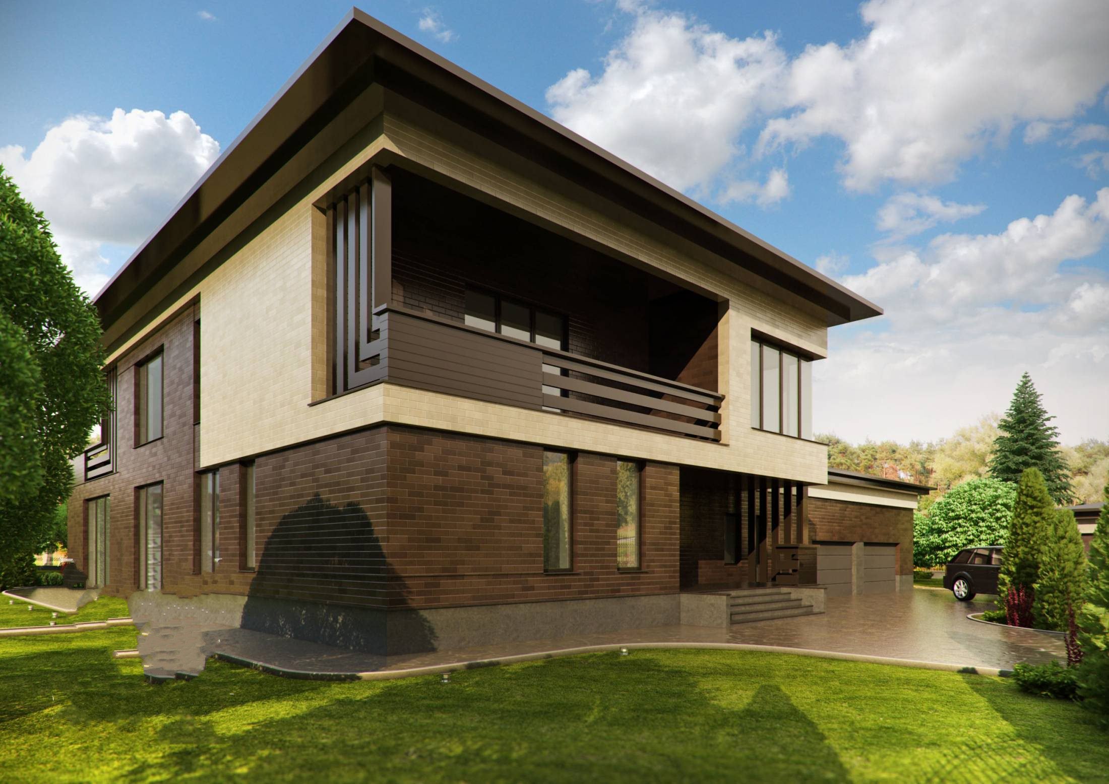 Charakteristische Merkmale des modernen Stils in der Gestaltung von Privathäusern und Landhäusern sind lakonische und leicht eckige Architektur sowie die Anwesenheit von perfekt regelmäßigen geometrischen Formen. Diese Merkmale sind inspiriert von den Ideen europäischer Designer. Solche Gebäude sind heute sehr beliebt, da sie nicht ins Auge fallen und nicht mit ihrer Pracht irritieren,aber immer noch stilvoll und reich aussehen.