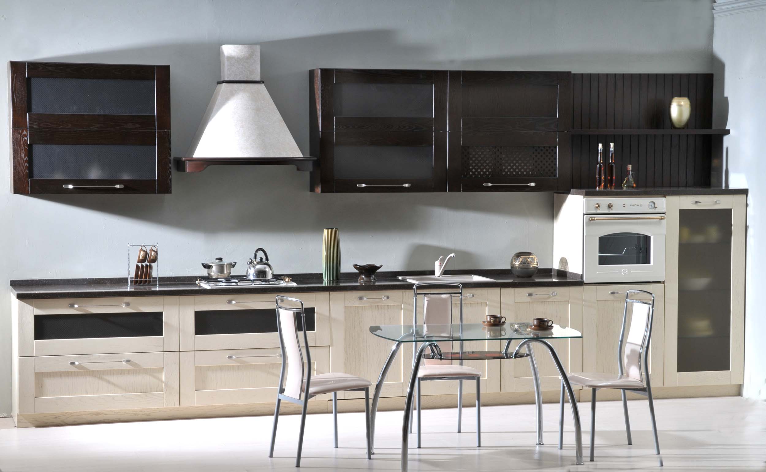 Hochwertige Möbel aus Edelholz in modernen Esszimmern und Küchen sollen trotz ihres vorzeigbaren Erscheinungsbildes besser nicht genutzt werden. Es ist besser, Metall-, Stahl-, Kunststoff- und Glas-Einrichtungsgegenständen den Vorzug zu geben, die eher für progressive Stilrichtungen geeignet sind.