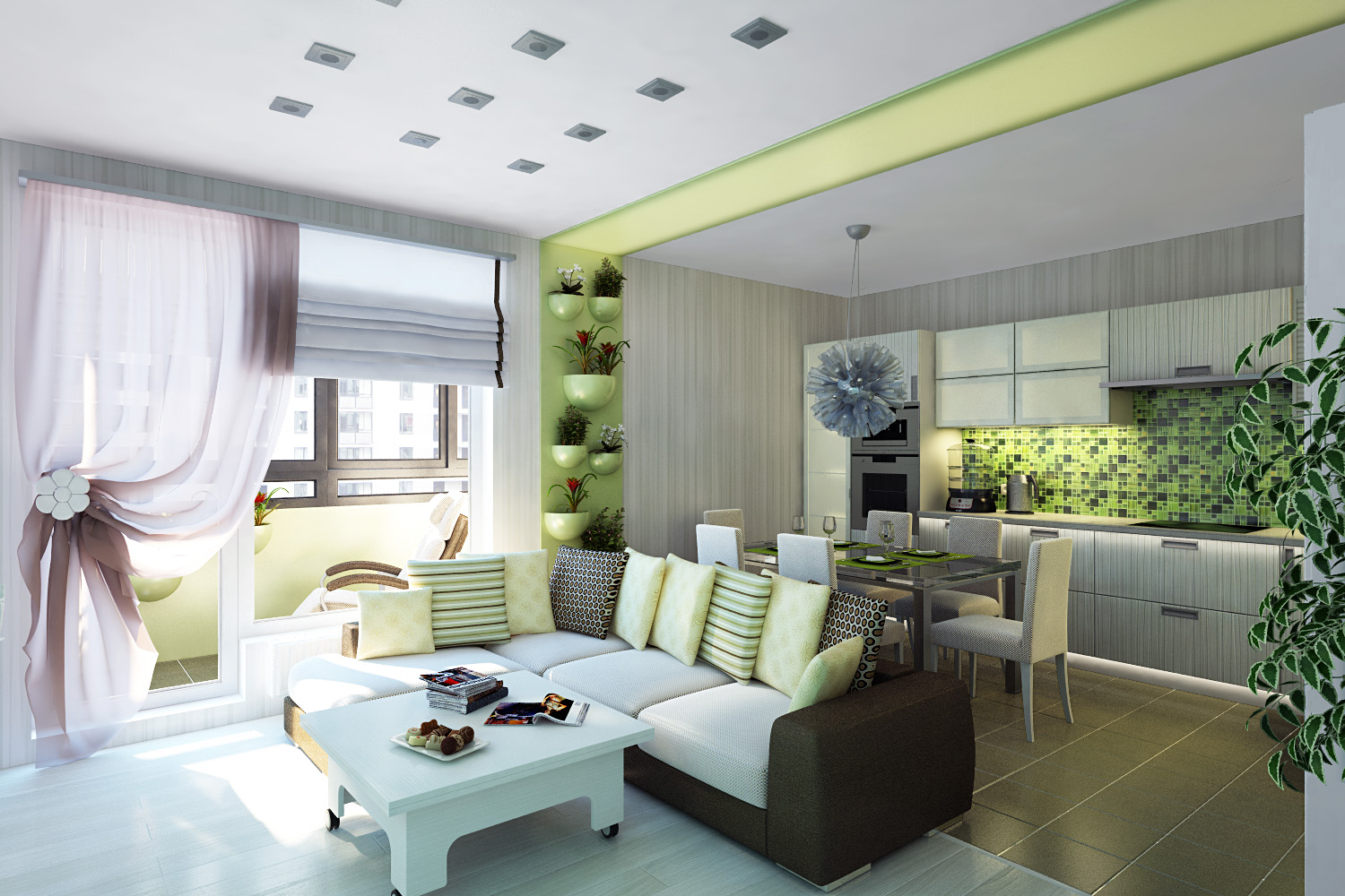 Moderner Stil sollte nicht nur in der Dekoration und Möbel, sondern auch in der Beleuchtung verfolgt werden. Sehr stimmig und anziehend wirken in solchen Ensembles hohe und große Stehleuchten mit Chromoberflächen, ausgefallene und avantgardistische Deckenleuchter aus futuristischen Formen aus hitzebeständigem Kunststoff oder Metall sowie in Reihe angeordnete, hängende Halbrundleuchten.