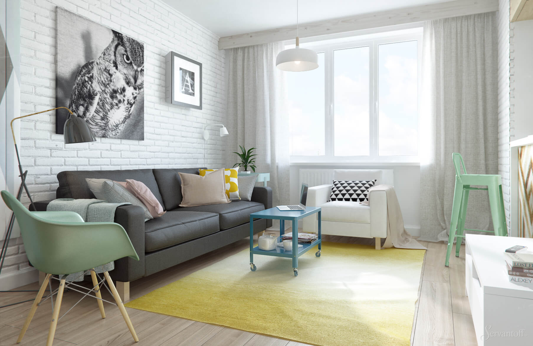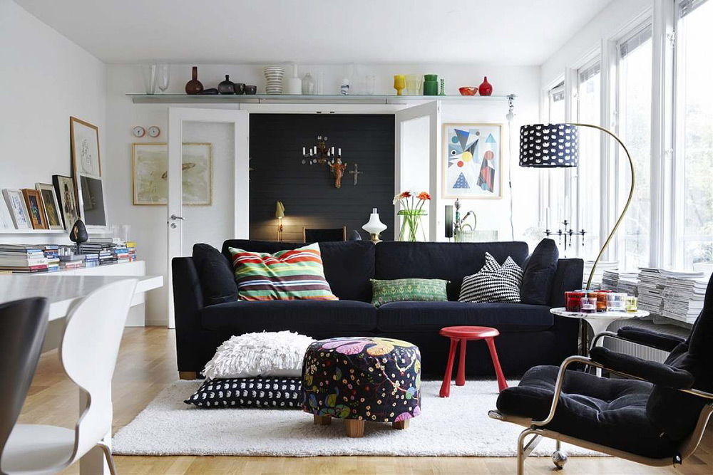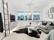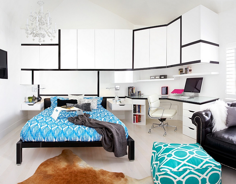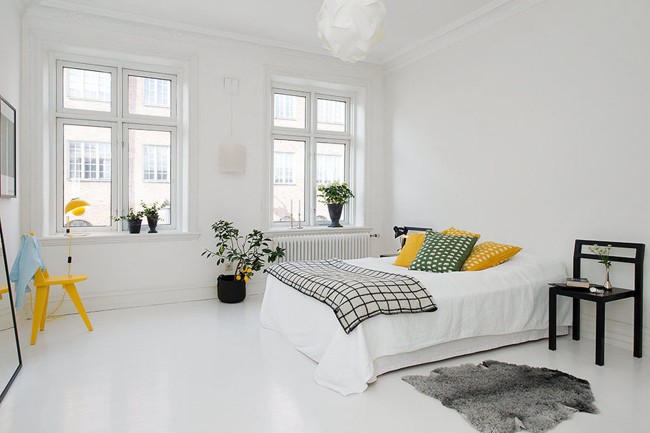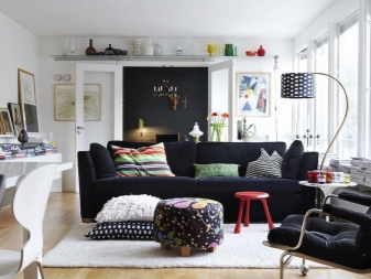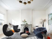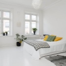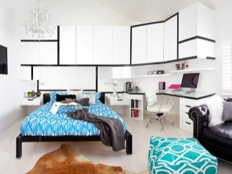 Um den Raum größer zu gestalten, müssen Sie nur helle Farben verwenden.da dunkle Farbtöne den Raum optisch verengen. Ein Zimmer in Schwarz-Weiß-Design wirkt sehr stilvoll und modern. Diese Option verliert für viele Jahre nicht an Relevanz und gilt als eine Art Designtrend.