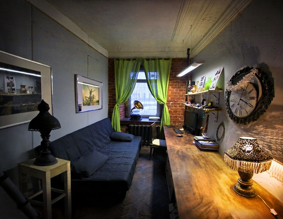 Die Grundlage der Farben sind hier Schwarz-, Weiß-, Grau- und Brauntöne. Kreative Künstler bevorzugen diese Art von Raumgestaltung, da sie die Ablehnung allgemein akzeptierter Normen und Standards vorsieht.Es ist perfekt für die Realisierung nicht nur in Wohngebäuden und Wohnungen, sondern auch in vielen öffentlichen Räumen.