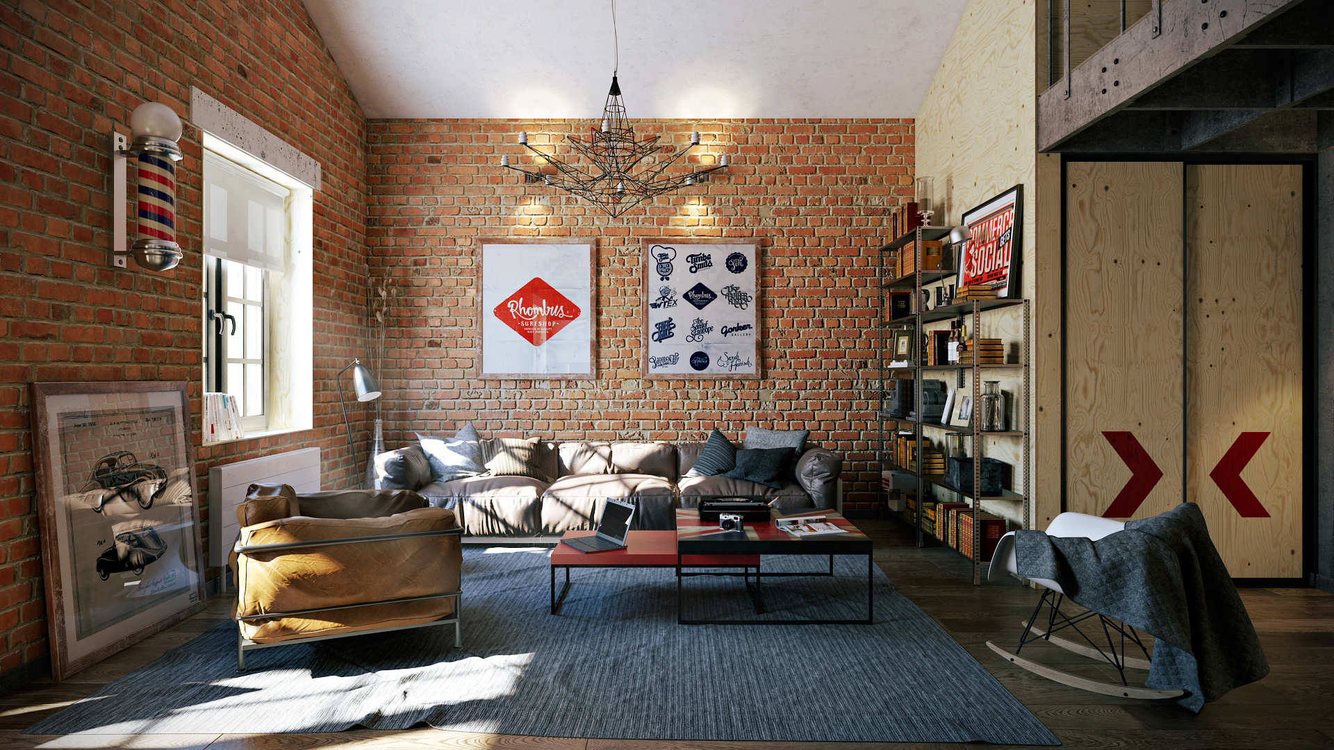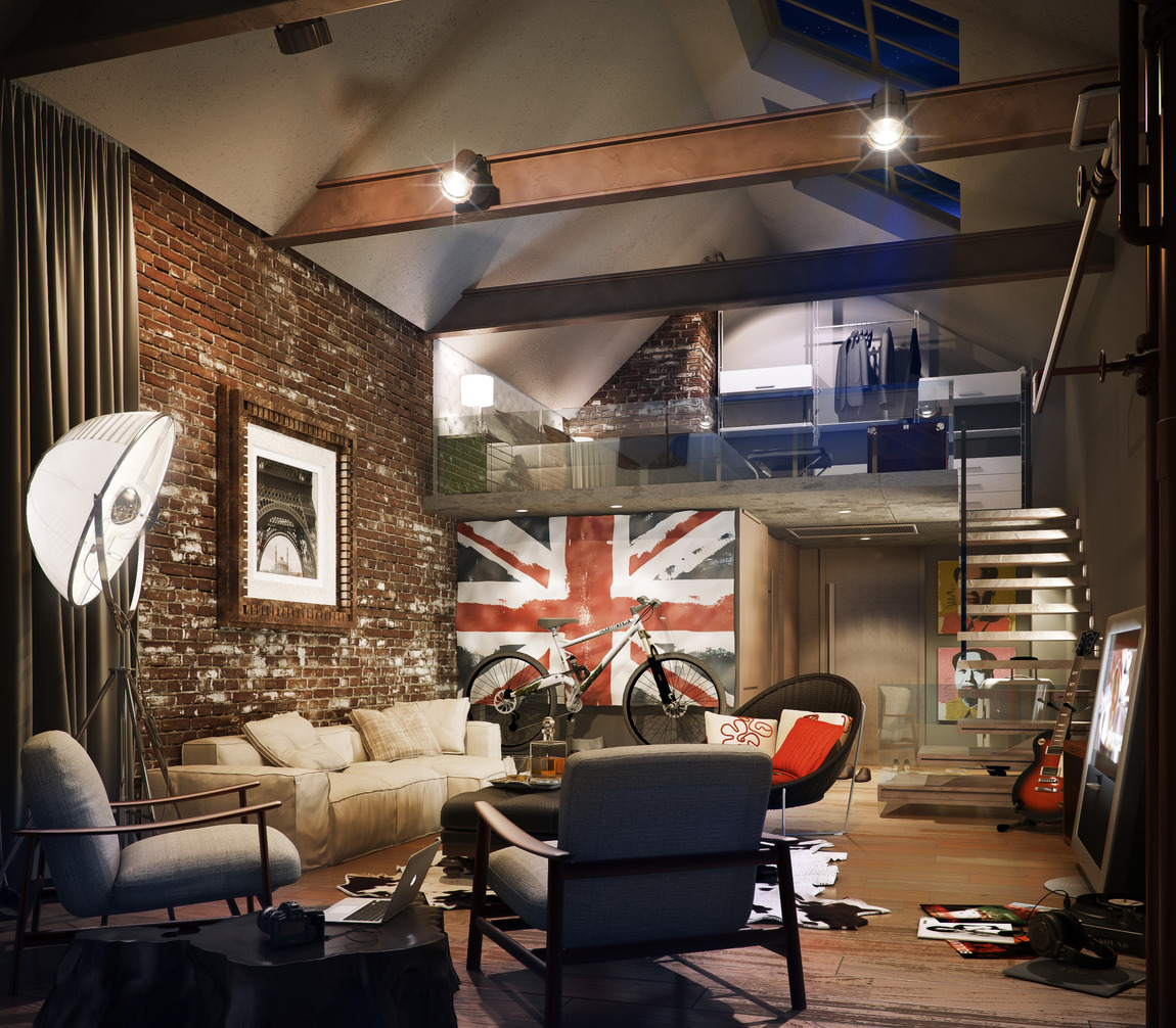 Dieser Stil vereint harmonisch Neues und Altes. Der Innenraum ist vor allem durch Ziegel, Beton, verputzte oder gestrichene Wände sowie antike Möbel aus Holz oder Metall geprägt. Dies ist ideal für große Räume mit freiem Platz. Wenn Sie sich für ein solches Design entscheiden, können Sie mit minimalen finanziellen Investitionen ein einzigartiges Interieur schaffen.