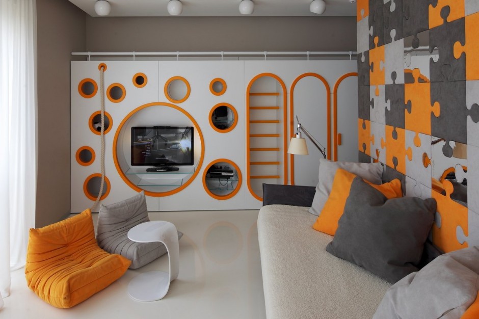 Diese Gestaltung des Raumes zeichnet sich durch Merkmale wie eine klare Ausdruckskraft und Prägnanz in fast allem aus. Die Möbel in diesem Stil sind aus Kunststoff, Metall, sowie Glas und zeichnen sich durch erstaunliche Funktionalität aus. Beim Dekorieren der Wände sind zu helle Farbtöne nicht erlaubt, daher ist hier die Priorität Weiß, Grau, Schwarz und Braun. Die Decke kann montiert oder abgehängt werden, auf denen Scheinwerfer sind. Der Teppich liegt auf dem Boden, was dem Raum eine besondere Gemütlichkeit und Behaglichkeit verleiht.