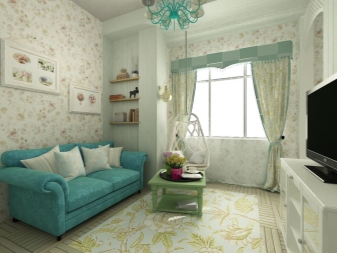Dieser Stil ist sehr angenehm und gemütlich. Heute bevorzugen viele Menschen diese besondere Designrichtung. Diese Anordnung ist perfekt für ein Wohnzimmer mit einer Fläche von 18 Plätzen.