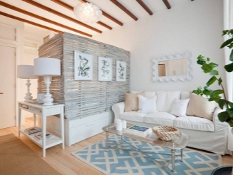 - Es ist erwähnenswert, dass in kleinen Räumen mit einer Fläche von 15-18 Quadratmetern es besser ist, helle Schattierungen von Decken und Wänden zu verwenden. Die Deckenbeschichtung ist am vorteilhaftesten, um monoton zu sein.