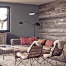 Die mit Holz ausgekleidete Wand ist gut in einem Landhaus, sie unterstützt Landhausstil oder skandinavische Ausrichtung.