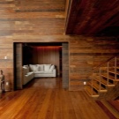- Wände Holz schalldicht, sie halten das Haus warm, riechen gut und schaffen eine wunderbare Atmosphäre. Es ist nicht notwendig, alle Wände mit Holz zu verkleiden, nur eines von ihnen oder auch nur ein Teil ist in Form eines Dekors möglich. Akzentwand kann an der Spitze des Betts gemacht werden oder einen spezifischen Bereich auswählen. An der Wand passen Paneele, Wandverkleidung, Laminat. Exquisit im Innenbereich gesägt (Schnitt eine glatte Querschicht aus Holz).