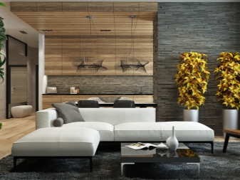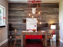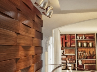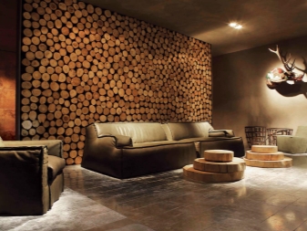 Wenn Sie Holzdekor in Ihrem Interieur verwenden, sollten Sie daran denken, dass es mit allen natürlichen Materialien kombiniert wird: Metall, Stein, Ziegel, Glas, Leder, Stoffe.Besondere Originalität der Dekoration gibt Erleichterung. Bei der Auswahl eines Oberflächenmaterials ist es notwendig, die Art und Struktur des Baumes, die Dicke, die Farbe und das Aussehen zu berücksichtigen.