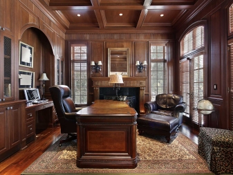 Imitationen betrachten MDF und Spanplatten, Laminat, Furnier. Im Innenraum mit gewölbten Flächen können Sie Holztapeten (dünne Furniere auf dickem Papier) verwenden. Nach dem Ankleben sollten sie lackiert werden. Natürliche Produkte werden aus Eiche, Zeder, Kiefer, Linde, Ahorn, Mahagoni gewonnen.