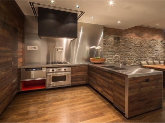- In der Küche Viele bevorzugen, Stein, Fliese zu sehen. Sie sind leicht zu pflegen, aber der Raum wird wie eine Stein- "Tasche". Wenn Sie in das Innere der Küche Holzprodukte eingeben, wird die Situation sofort wärmer und komfortabler.