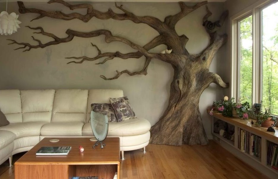 Baum im Inneren der Wohnung: einfache Design-Ideen