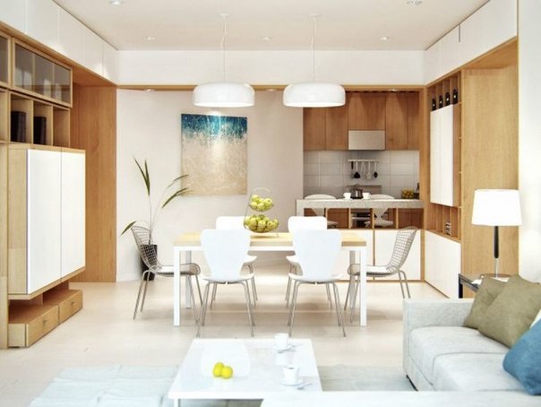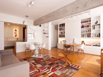 Um ein einfaches und funktionelles Interieur zu erhalten, sollten Sie zunächst die dominanten Zonen definieren. Zum Beispiel ist es für Kinder ratsam, einen Spielbereich zuzuweisen. Die Neuentwicklung wird dazu beitragen, die Fläche der erforderlichen Zone zu vergrößern oder zu verkleinern. Also Durch die Kombination von Küche und Wohnzimmer können Sie den Essbereich vergrößern und zusätzlichen Platz schaffen.
