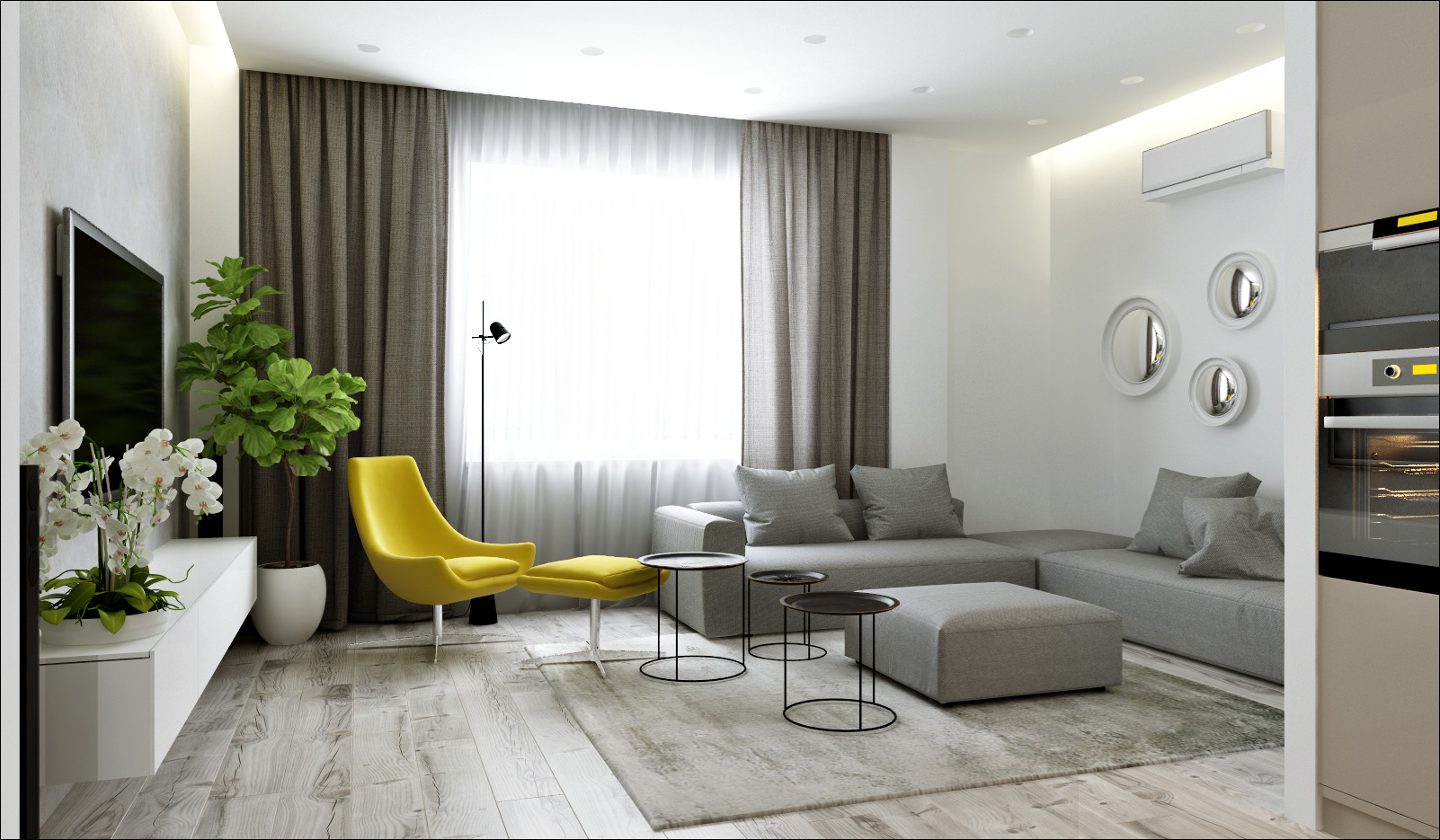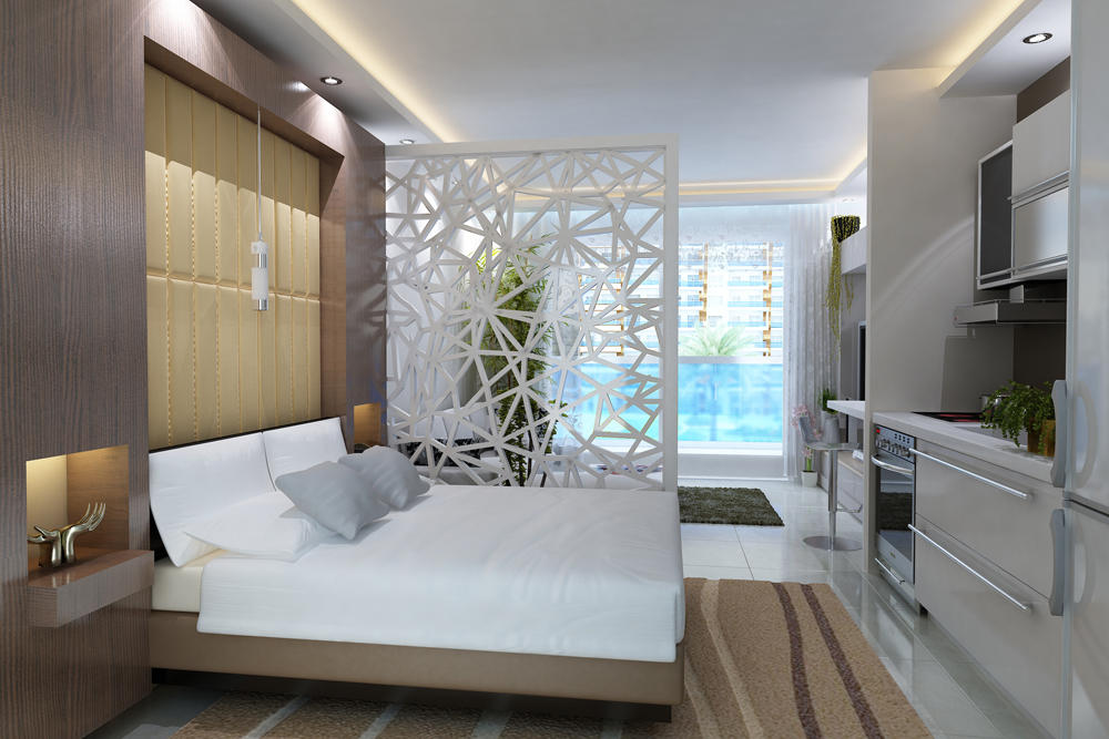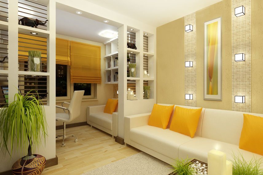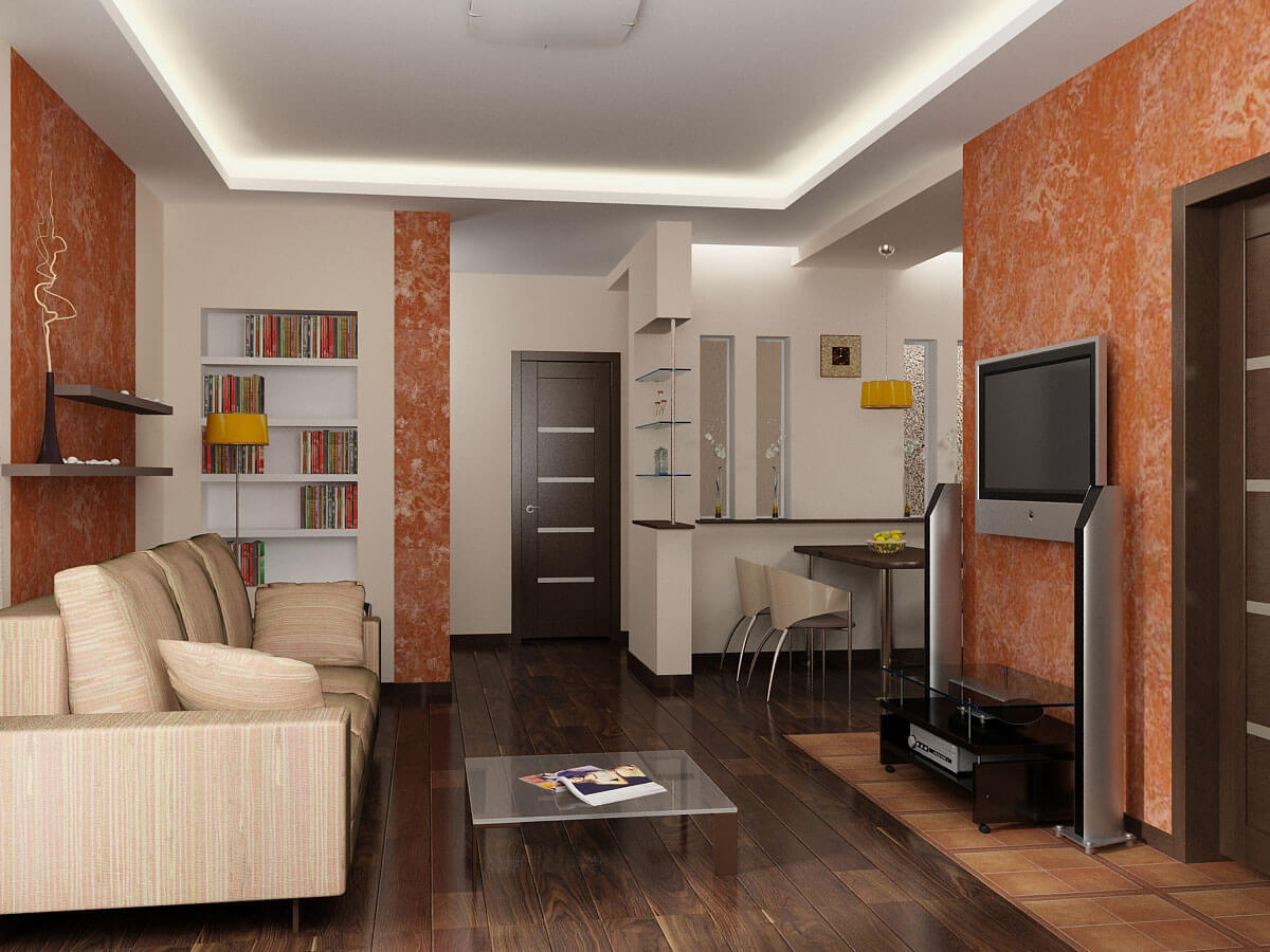 Eine wichtige Rolle im Innenraum spielen die Farben. Genau abgestimmte Proportionen und Dekoration mit Hilfe von hellen Farben können Sie visuell den Raum erweitern.Die kontrastreiche Farbgebung wird die Wohnung attraktiver machen: Der Schatten der Mittelwand kann dunkler gewählt werden als andere. Der Boden wird zu einem individuellen Merkmal des Raumes, wenn er sich von der Farbpalette der Wände unterscheidet. Vergiss das nicht Bei der Wahl eines farbigen oder hellen Bodens sollten die Wände die gleiche Farbe haben.