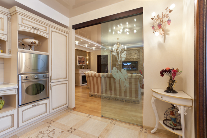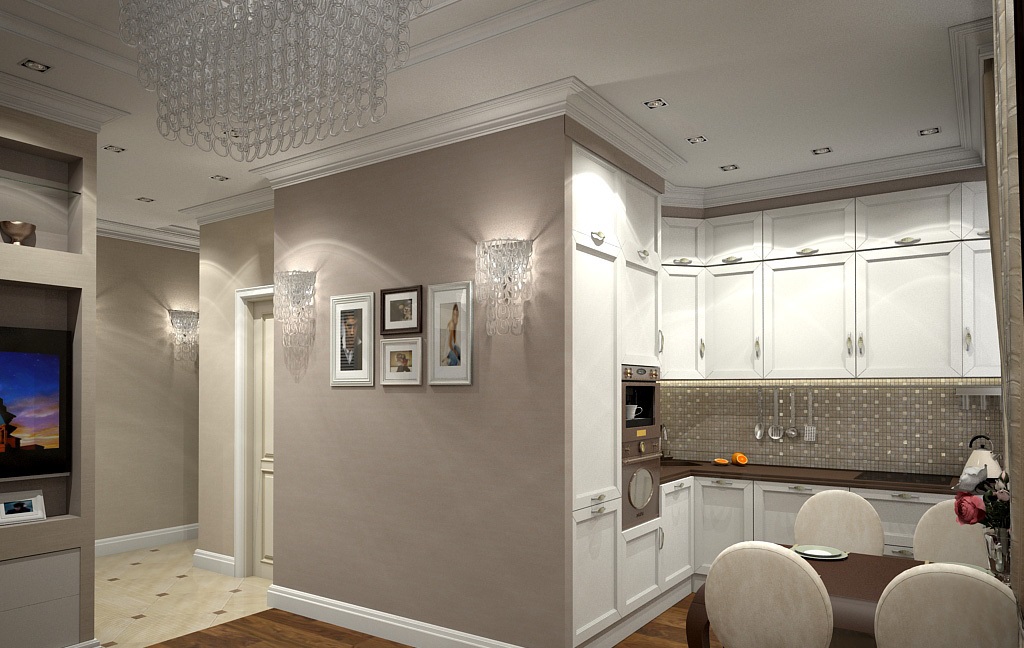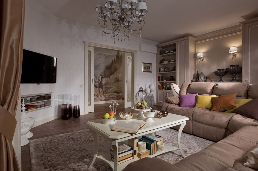 - Klassischer Stil Im Innenbereich ist es unmöglich, sich ohne hohe Decken mit Stuck, Holzböden, glänzenden Rund- oder Quadertüren und Möbeln aus edlem Holz vorzustellen. Präferenz in diesem Stil wird zu Pastelltönen gegeben. Der klassische Stil beinhaltet die Verwendung von zentraler Beleuchtung - ein großer Kristallkronleuchter mit Metallelementen und Vergoldung. Stehlampen aus Stahl und Lampenschirme aus Stoff werden die perfekte Ergänzung der Innenarchitektur sein.