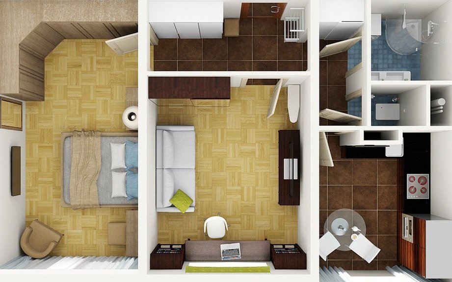 Bei der Gestaltung eines Zwei-Zimmer-Apartments ist es wichtig, sich an den Komfort und die Funktionalität der Räumlichkeiten zu erinnern. Korrekte bestehende Mängel sollten in den Anfangsphasen des Projekts liegen. Jede interessante Idee muss umgesetzt werden, ohne den Zweck des Raumes zu vergessen.