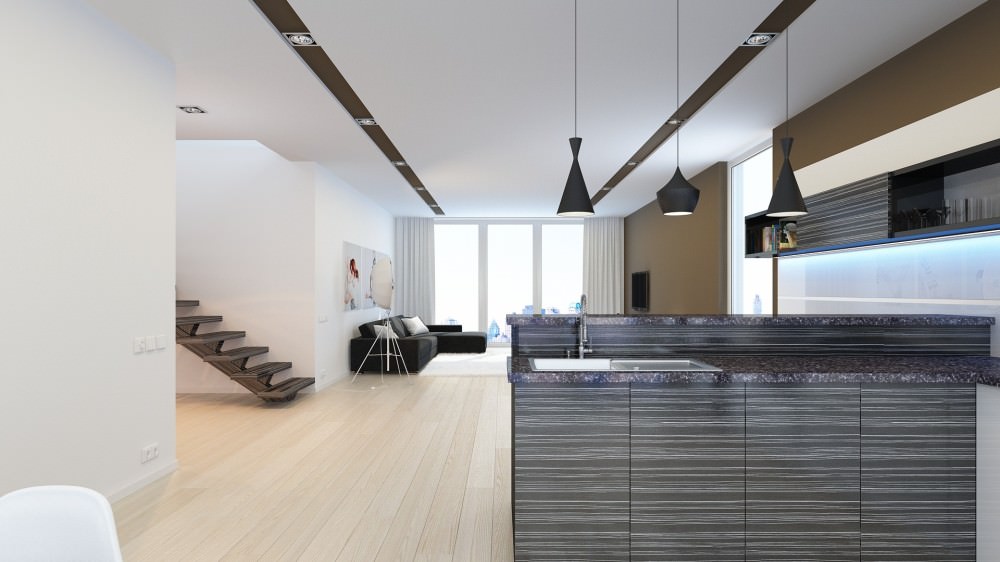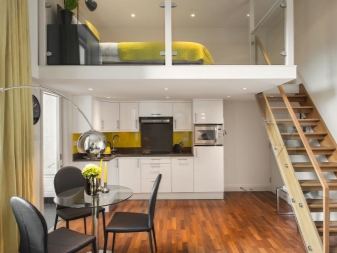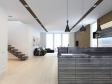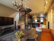 Die Hauptsache, wenn Sie eine Wohnung auf zwei Ebenen entwerfen - alle Räume auf verschiedenen Etagen sollten im gleichen Stil hergestellt werden. Sie sollten nicht eine große Vielfalt von verschiedenen Richtungen im selben Raum anhäufen.