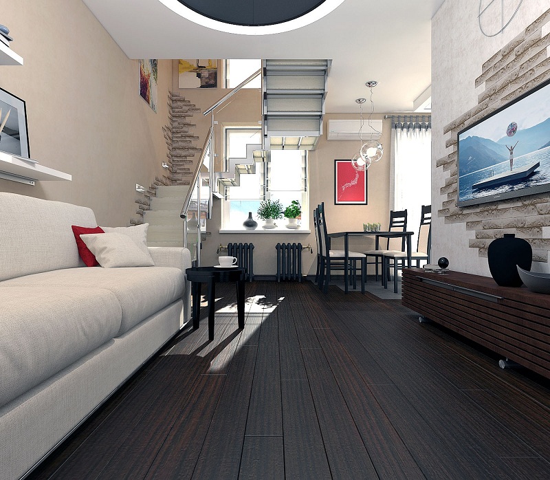 Solche Wohnräume verlieren nie ihre Popularität. Sie sind die Verkörperung des guten Geschmacks ihres Besitzers. Solche Wohnungen gelten im Geheimen als sehr repräsentativ, auch wenn es sich um eine sehr bescheidene Option handelt.Der große Vorteil von zwei Stockwerken kann die Isolation des Raumes sein. Dies ist besonders wichtig, wenn Sie eine große Familie haben. Es ist möglich, das Haus in zwei Zonen zu unterteilen: Allgemein und Privat. Im Erdgeschoss gibt es ein Wohnzimmer und eine Eingangshalle, wo jeder Gast Zugang hat. Und der zweite Stock gehört ganz Ihnen.