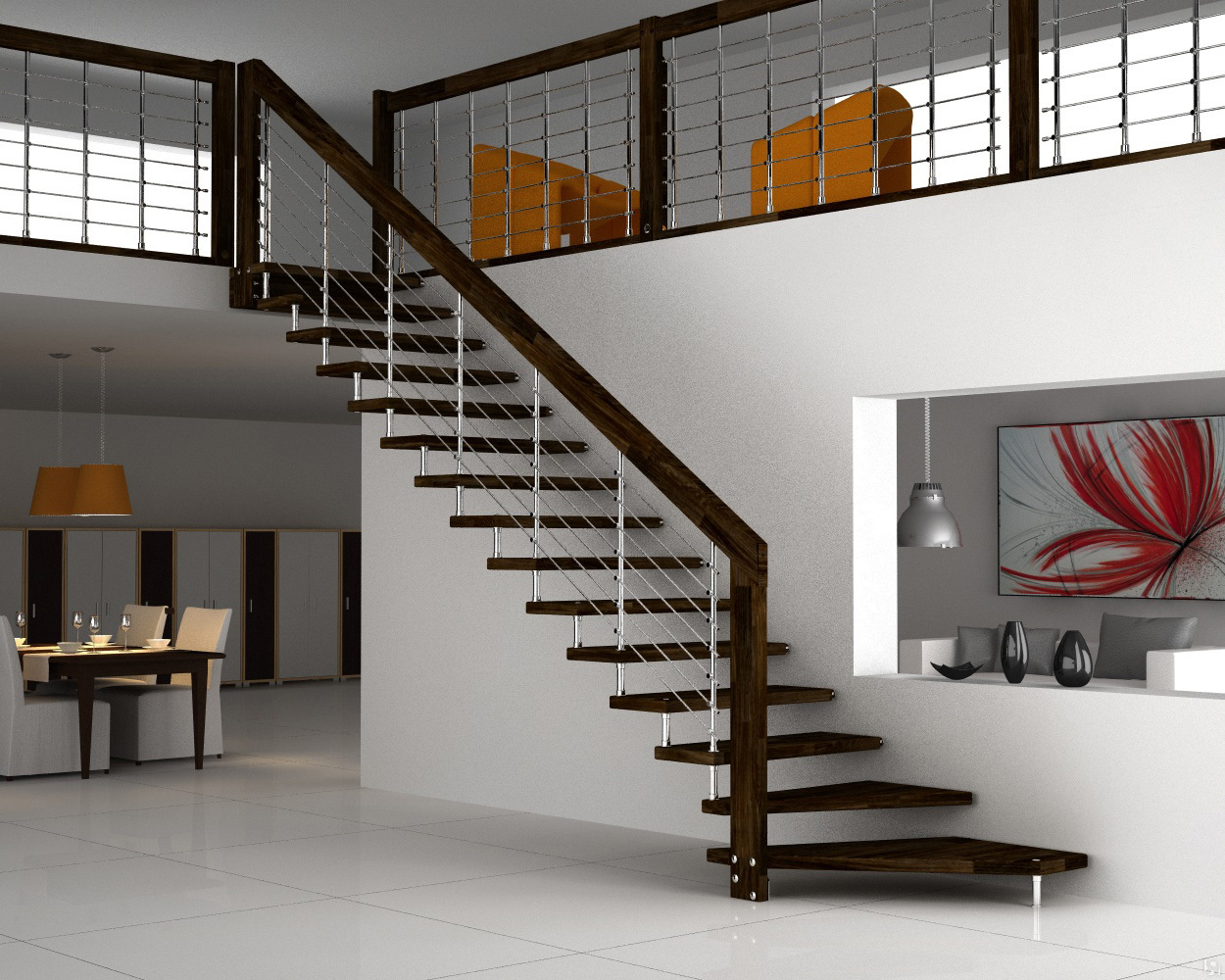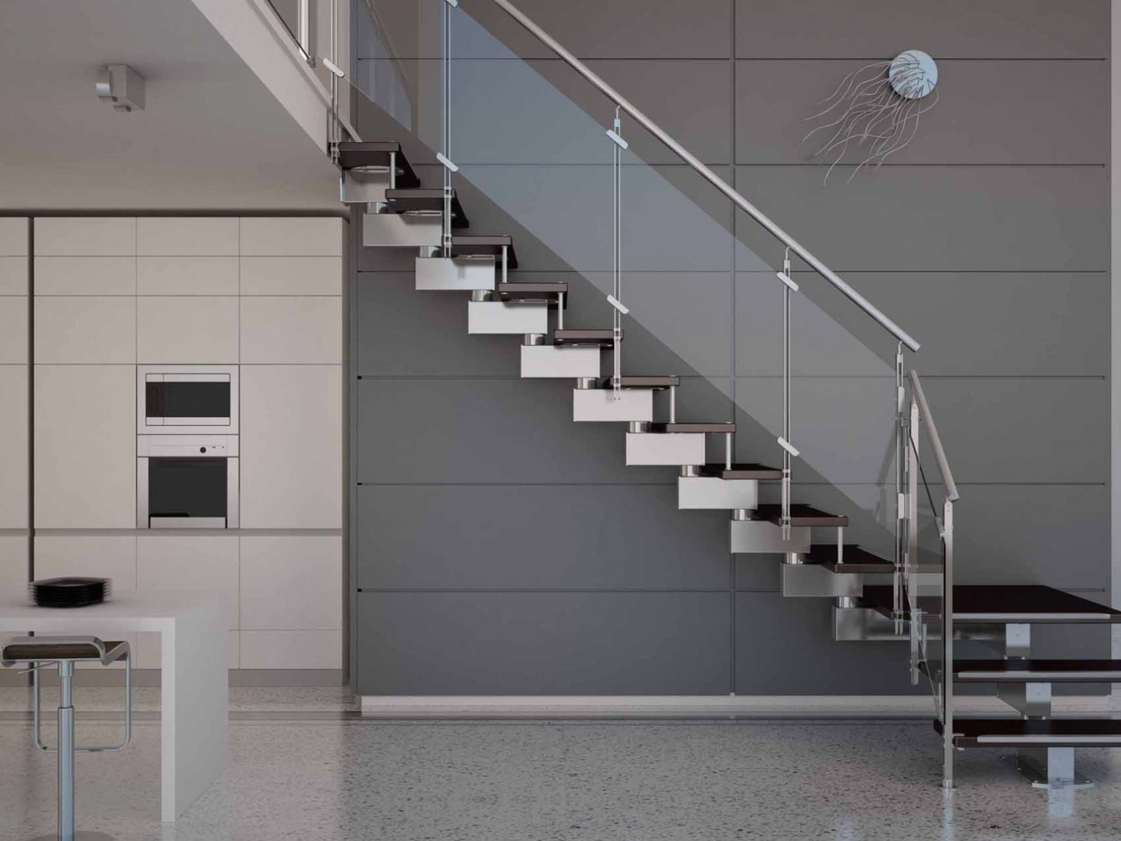 - Geschraubt. Solche Designs sind am ergonomischsten und modernsten. Stufen sind direkt am Geländer befestigt. Das Ergebnis ist ein kompaktes Design, das den Platz nicht überfüllt und gut aussieht.