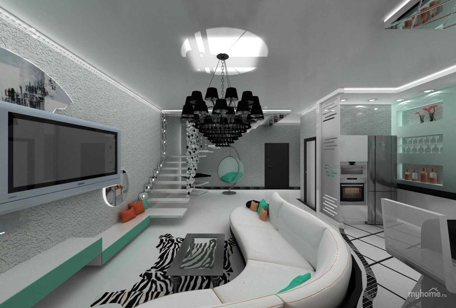Wir geben einige konkrete Beispiele für das Design einer zweistöckigen Wohnung. Da die Decken in zweistöckigen Häusern oft ziemlich hoch sind, ist es besser, Spanndecken im Raum zu installieren.